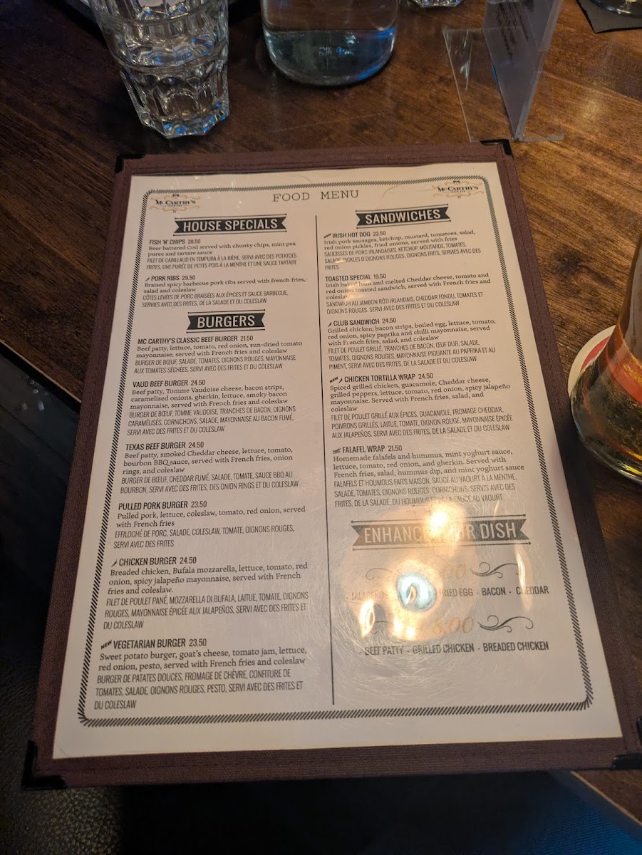 Welcome to McCarthy's Irish Pub, a vibrant gem located in the heart of Lausanne, Switzerland. This charming establishment excels in serving traditional Irish fare alongside a fantastic selection of drinks, ensuring a delightful experience for both locals and visitors. The menu boasts mouthwatering burgers, notably the Texas beef burger, which patrons rave about for its flavor and presentation.